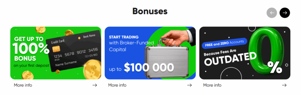 The minimum deposit often starts from $50-100, which is a low entry threshold and attracts beginners.